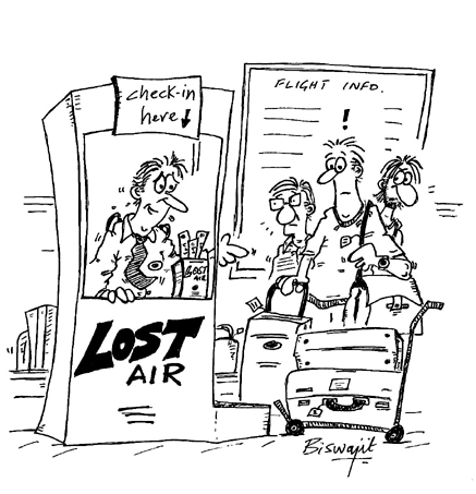 "Now you can check in your lost baggage, Sir!" |