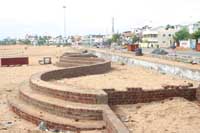 The two-year-old beautification plan, deemed completely unwarranted by those aware of the beach’s natural beauty, envisaged a Rs. 3 crore expenditure on building a walkway of 850 m with slip resistant interlocking tiles, lawns, fountains and an elevated sand area for walkers. An additional Rs 4.80 crore was to be spent on facilities such as a yoga centre, a police booth, an amphitheatre, parking lots, toilets, children’s play area and a 2.5 km floating corridor on the sea. Even when the project was at the concept stage, local residents and environmentalists had objected to it. With the exception of the toilets, none of the other facilities was felt necessary. But Government went ahead regardless. And work began on two galleries and a fountain.