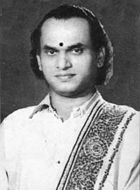 Madurai Ponnu Iyengar, a noted violinist of the town, volunteered to train the gifted boy in Carnatic music. The training lasted six years, at the end of which Thyagarajan gave his maiden concert in Trichy. He was accompained on the violin by his guru, and on the mridanga by Dakshinamurthy Achari. Achari’s guru, the percussion wizard Pudukottai Dakshina murthy Pillai, played the khanjira for Thyagarajan. At the end of the performance, Dak shina murthy Pillai publicly announced that he had never heard such brilliant music, and hailed the boy as a ‘Bhagavatar’. Thyagarajan henceforth came to be known as Thyagaraja Bhagavathar. Even S.G. Kit tappa, the monarch of Tamil theatre, warmly affirmed that Thyagarajan deserved the title. Encouraged by the commendation, Thyagaraja Bhagavathar started taking advanced training under Alathur Venkatesa Iyer, the Alathur Borthers and the great composer Papanasam Sivan.