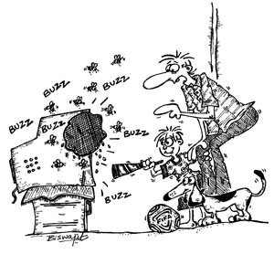 "Can you believe this, the ubiquitous buzzing of vuvuzelas has got the bees building a hive on our TV!" |
