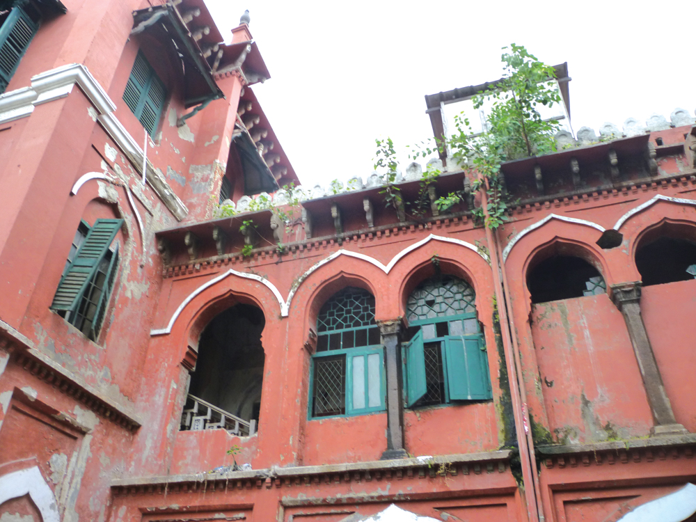 The Khalsa Mahal presents a very sorry spectacle too. Through its arches it is possible to see the fallen beams and plenty of rubble. Even the molten plastic sheets from erstwhile temporary partitions have not been removed and hang precariously from the windows. The north-western end which housed the area of worship (below which is the old marble plaque that states that this was the residence of the Nawab of the Carnatic) has plenty of vegetation growing from its crevices. Windows are falling apart and several gaping holes can be seen. If at all there is one structure that still looks solid, it is the tower that Chisholm built to weld the two wings together.
